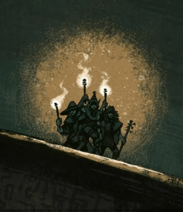 Viidestä hahmosta pelipöytään pääsi neljä. Seurueeseen kuuluivat valaistumista etsivä itsekäs maagi, katumusharjoituksia suorittava soturi, okkultistin tänne pakottama juoppo sekä seikkailun perässä kulkeva hyväntahtoinen Alisen kuun palvoja. Hahmojen taustoihin olikirjoitettu sopivia koukkuja ja pelaajat laajensivat niitä miellyttävästi. Jo hahmonluontivaiheessa tuntui siltä, että saamme pelin hengestä kiinni. Puolivalmiit hahmot ja seikkailun ranka alkoivat limittyä hauskasti ja lupaavasti yhteen.