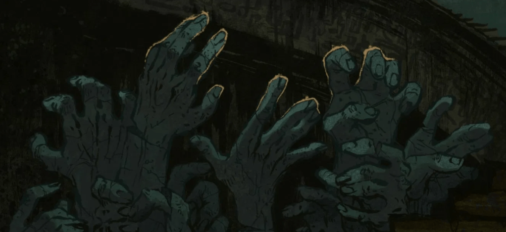 Pelinjohtajana käytin ensimmäisen beatin jo aivan alussa. Pelaaja, jonka hahmo oli Sydämessä okkultistipomon pakottamana, valitsi beatin “ota vastaan käsky pomolta”. Hän oli aiemmin hahmonluonnissa keksinyt, että hahmo saa yhteydenotot pomoltaan elävän lihan kautta. Siispä joten heti hahmoesittelyjen jälkeen toisen hahmon rinnasta tökkäsi esiin käsi, joka antoi käskyn etsiä matkalta jotakin poikkeuksellista. Seikkailuun on kirjoitettu, että vasallien luut ovat muuttuneet koralliksi, ja halusin tarjota hahmolle tilaisuuksia nähdä koralliluiset vasallit ilman kaapujaan. Lopulta hahmo bongasikin eräällä vasallilla erityisen upean kallon.