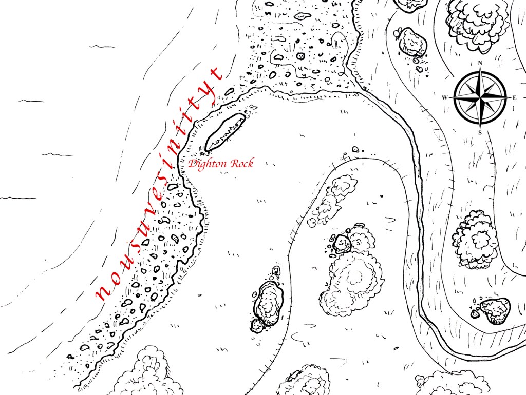 Dighton-joen rannalle rakennettu pikkuinen kylä ei herätä suurempia tunteita kenessäkään. Sitä ympäröivät suot, sekä varsinkin joen takana kohoavat metsät, vaikuttavat vihamielisiltä ja uhkaavilta. Paikallisten mukaan metsissä asuukin piruja, mörköjä ja villejä alkuasukkaita. Paikallisista Dightonin kivi kiinnostaa vain harvoja, vaikka se onkin aataminaikaisten tutkimusten yhteisön tiedossa.