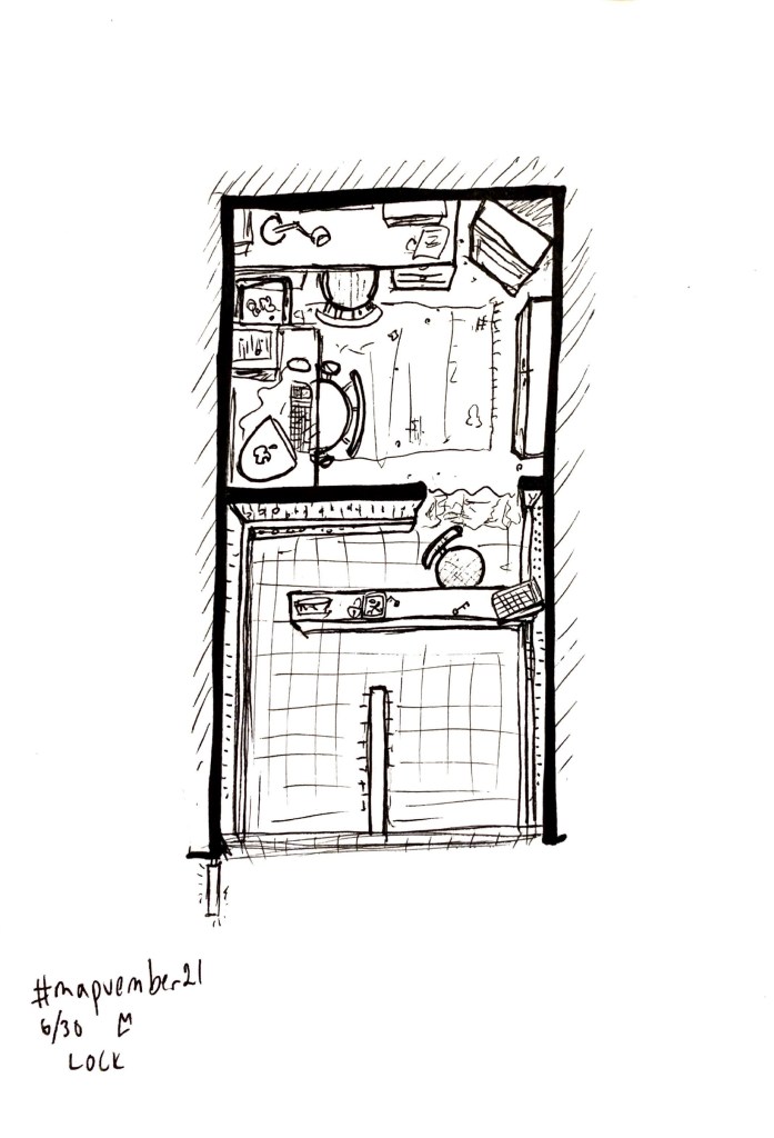 Piirtelin puolihuolimattomasti jotakin, mutta sitten päätin vain napata ensimmäistä ideasta kiinni ja katsoa, mitä tulee. Syntyi minimalistinen kartta vessasta.