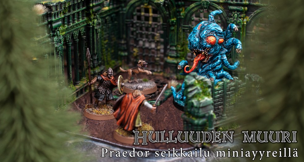 (Tunnustan, että yritin keksiä vielä pidemmän yhdyssanan otsikoksi.) Kun kerran piti lähteä Poriin asti Praeconiin, halusin pelauttaa jotakin hieman erilaista. Kun ohjelmassa oli Ville Vuorelan pelauttama sessio, piti oman premissin olla selvästi erilainen, jotta saisin pelaajia. Joten päädyin kehittelemään visuaalisen seikkailun miniatyyreillä. Ja ainakin pelaajien kommenteista ja osallistumistasosta päätellen idea toimi hyvin. Hulluuden muuri Sinimetsän… Jatka lukemista Miniatyyriroolipeliseikkailu