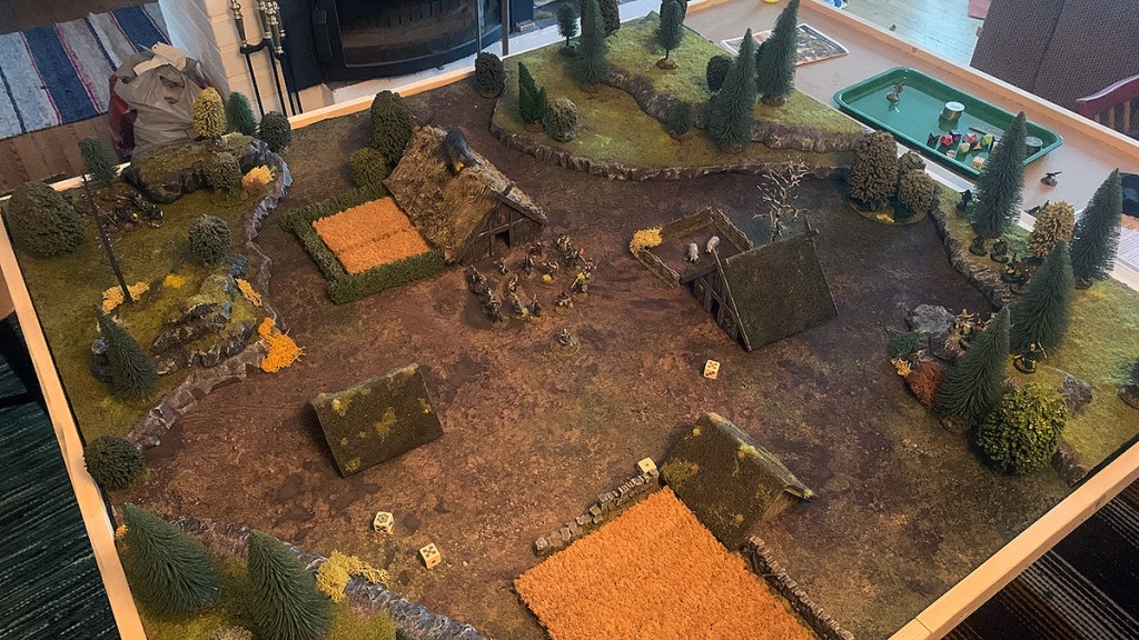 Pelasimme Ravenfeastin Pillage & Burn-skenaariota, sillä erolla että hyökkääjät (Santtu ja Esko) olivat eri tiimeissä puolustajiani vastaan. Peliteknisesti tämä tarkoitti lähinnä sitä, että hyökkääjät saapuivat kahdesta suunnasta, mutta muita muokkauksia ei skenaarioon ollut tarpeen tehdä – paitsi pelin aikana.