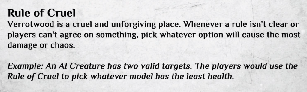 Koska kyseessä on indiepeli, ei virallisia figuja Verrotwoodiin ole. Cruchett vihjaa mahdollisuudesta 3d-printteihin jossain vaiheessa. Mutta tällä hetkellä peli on tarkoituksella miniatyyrien suhteen agnostinen ja figujen conffaukseen kannustava.