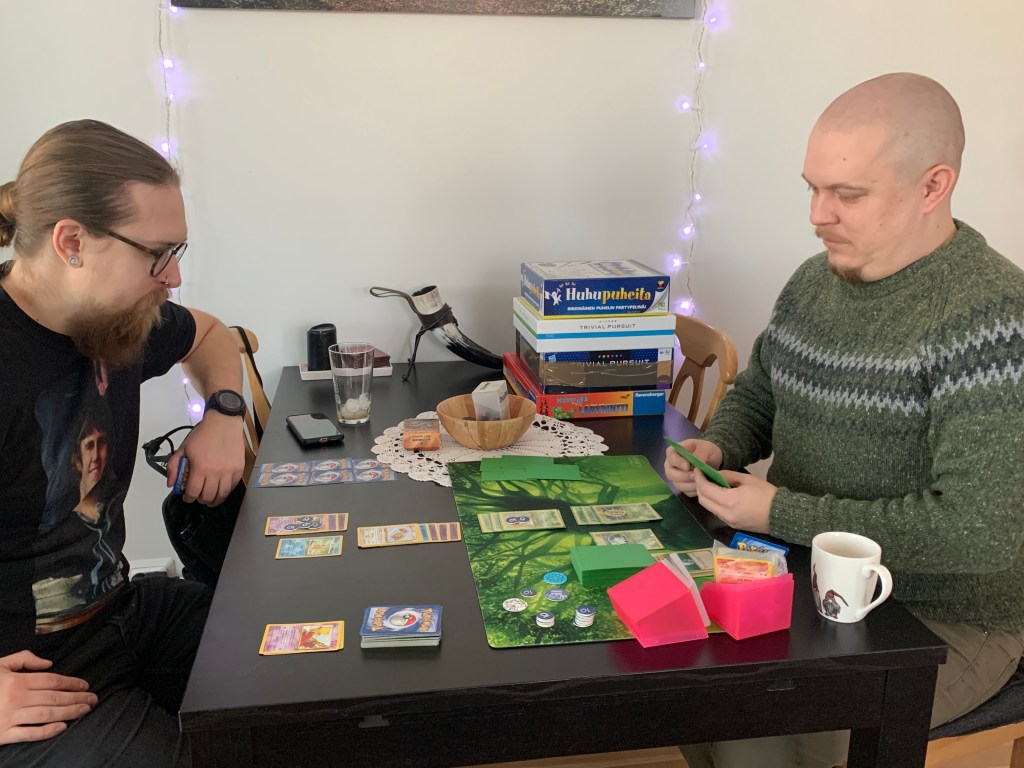 Pelaaminen olikin odottamattoman hauskaa. Molemmat muistelimme, että peli oli hyvä, mutta siltikin pelin sujuvuus pääsi yllättämään. Joten eipä muuta kuin hommaamaan muutamia uusia kortteja.