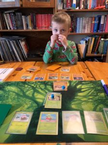 Joitakin vuosia sitten vein pienen läjän satunnaisesti kertyneitä Pokémon-korttejani koululle ja jaoin silloisille oppilailleni. Pohdiskelin, löytyisiköhän koululta tarpeeksi kiinnostuneita kerholle, mutten saanut aikaiseksi perustaa kerhoa – ennen kuin törmäsin oppilaisiini Pokémon-pelipäivänä Puolenkuun peleillä.