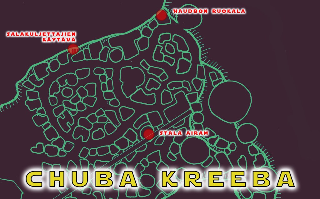 Niinpä aloitimme pelikerran suoraan Chuba Kreeban ulkopuolelta. Imperiumi oli kiristänyt kylän tarkkailua, eikä hahmoilla ollut aavistustakaan siitä, miten (tai ylipäätään miksi) possu pitäisi saada näiden ohi kohteelle. Koska heidät oli palkattu nimenomaan salakuljettamaan otus perille, oli oletettavaa, ettei se saisi joutua Imperiumin käsiin.