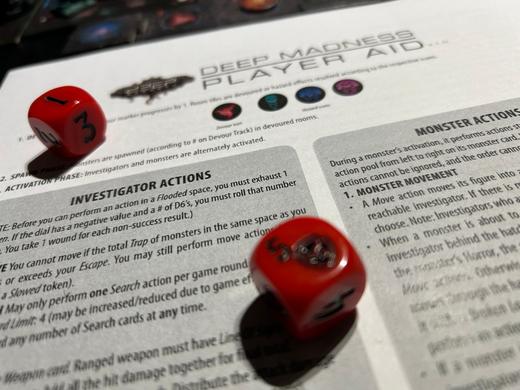 En voi väittää, etteikö moinen olisi vähän syönyt omia fiiliksiä, mutta ne myös suhteuttivat tilannetta paremmin. Suorituspainotteisuus unohtui ja pääsimme sisälle pelillisyyteen. Tarinan rakentamisen sijaan (vaikka sitäkin toki tapahtui), pelimme keskittyi sujuvaan yhteistyöhön ja keskusteluun halutuista suunnista. Voisi siis sanoa, että Deep Madness pääsi oikeuksiinsa nimenomaan pelinä.