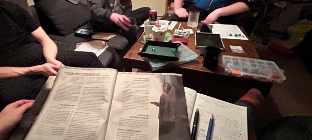 This brings me to my first (and largest) point on Arkham Horror RPG. It is a different beast in comparison to almost any other rpg I have ever played. I have heard the gatekeeping1 comments about AHRPG being just a fancy board game, and I’m here to tell you that this couldn’t be farther from the truth.